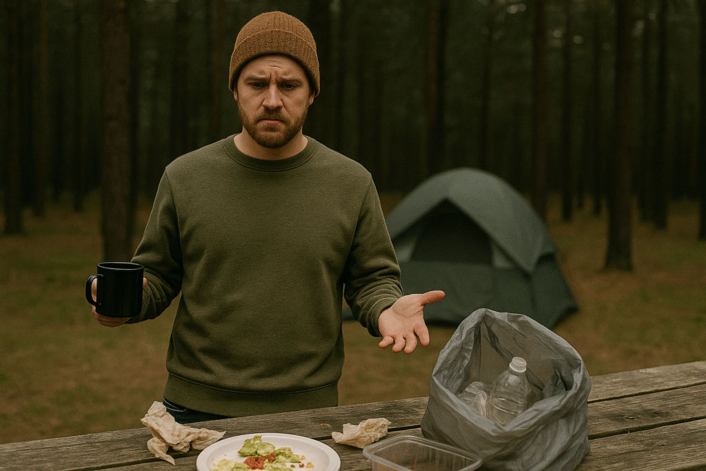 キャンプで出た残飯や生ゴミをテーブルやテントの外に放置するのは絶対に避けたい行為です。